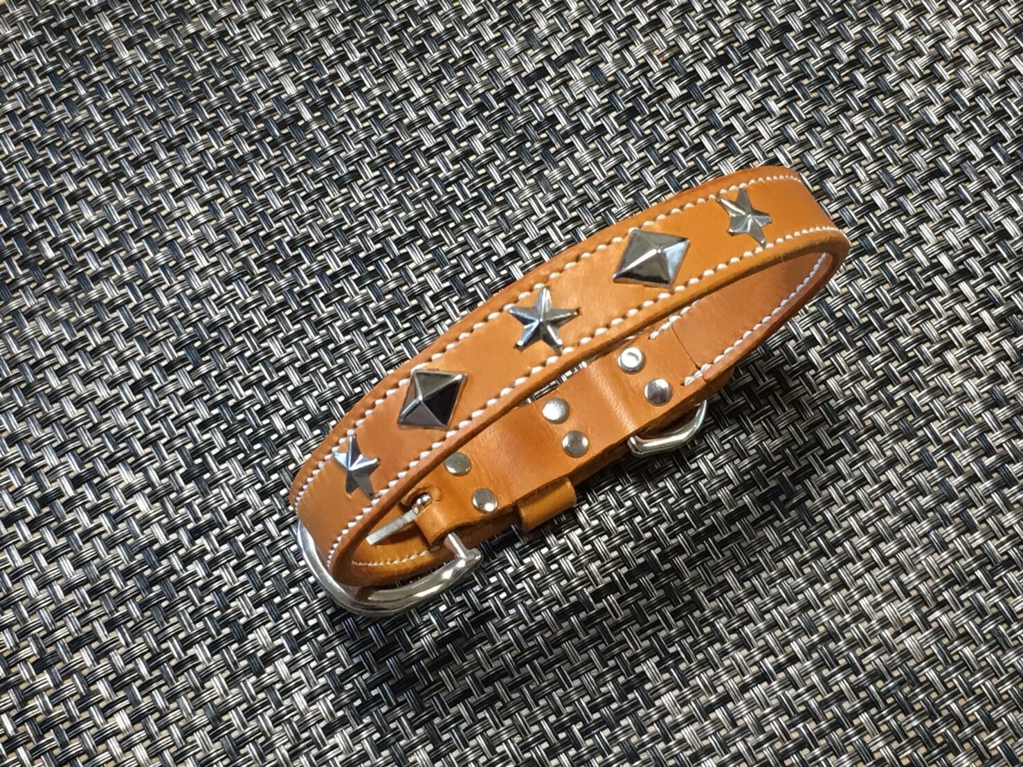 本ヌメ革を使用し、ひと針ひと針手縫いで仕上げた首輪です。