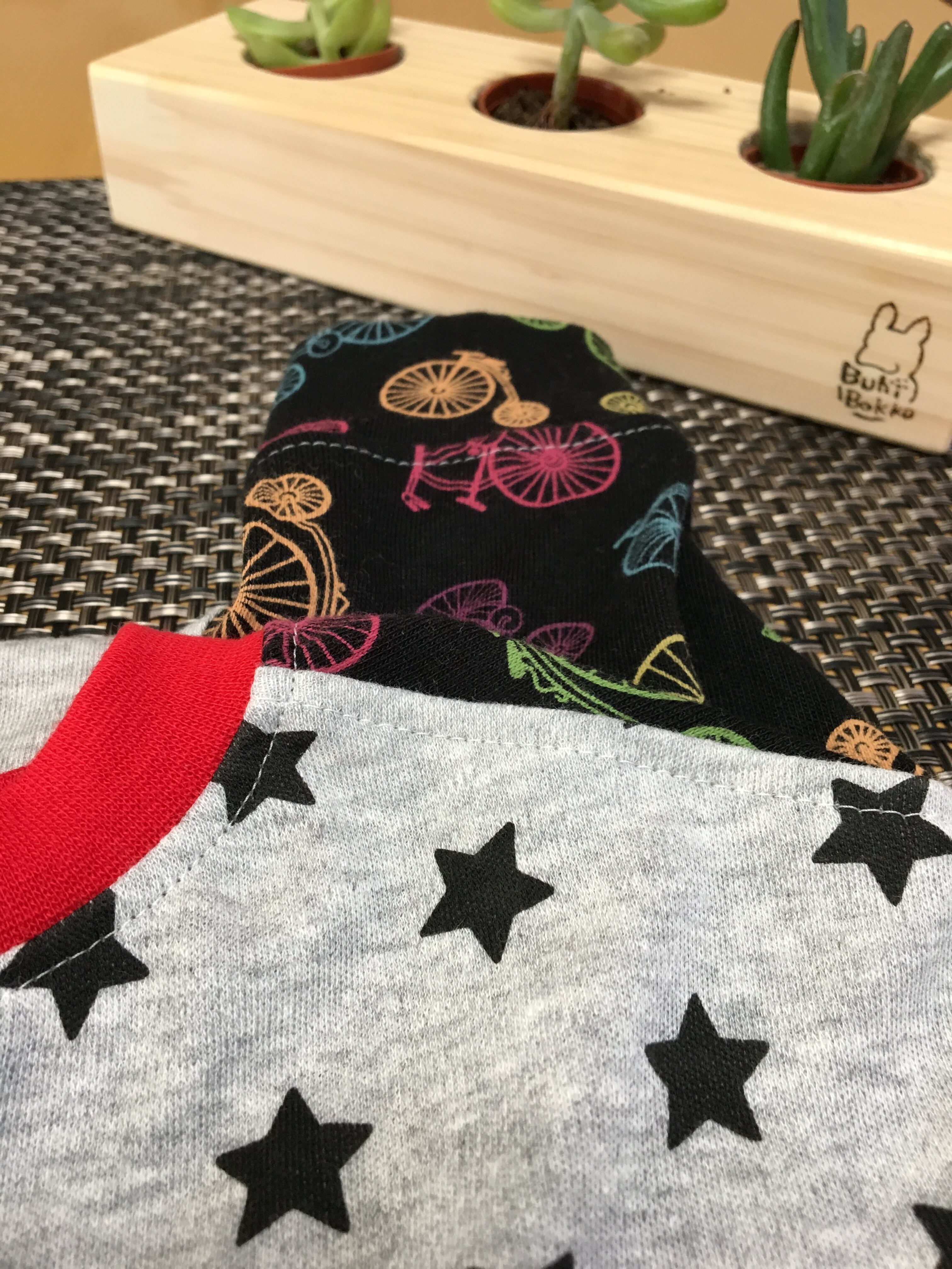 柔らかく伸びの良いフライス生地を使用し、元気一杯のラグランシャツが出来ました。