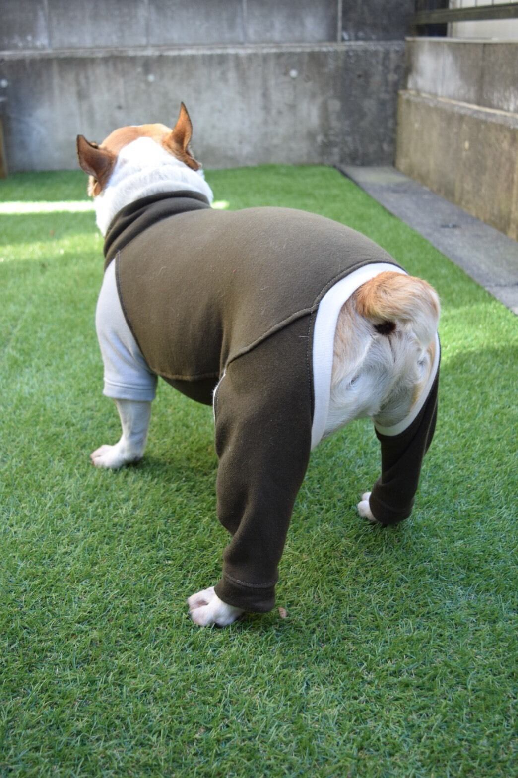 普通のトレーナー程度の厚さの生地を使ってロンパースができました✨ど☆シンプルな色の組み合わせのお洋服は、お部屋でもお外でも着用して頂けるかと思います